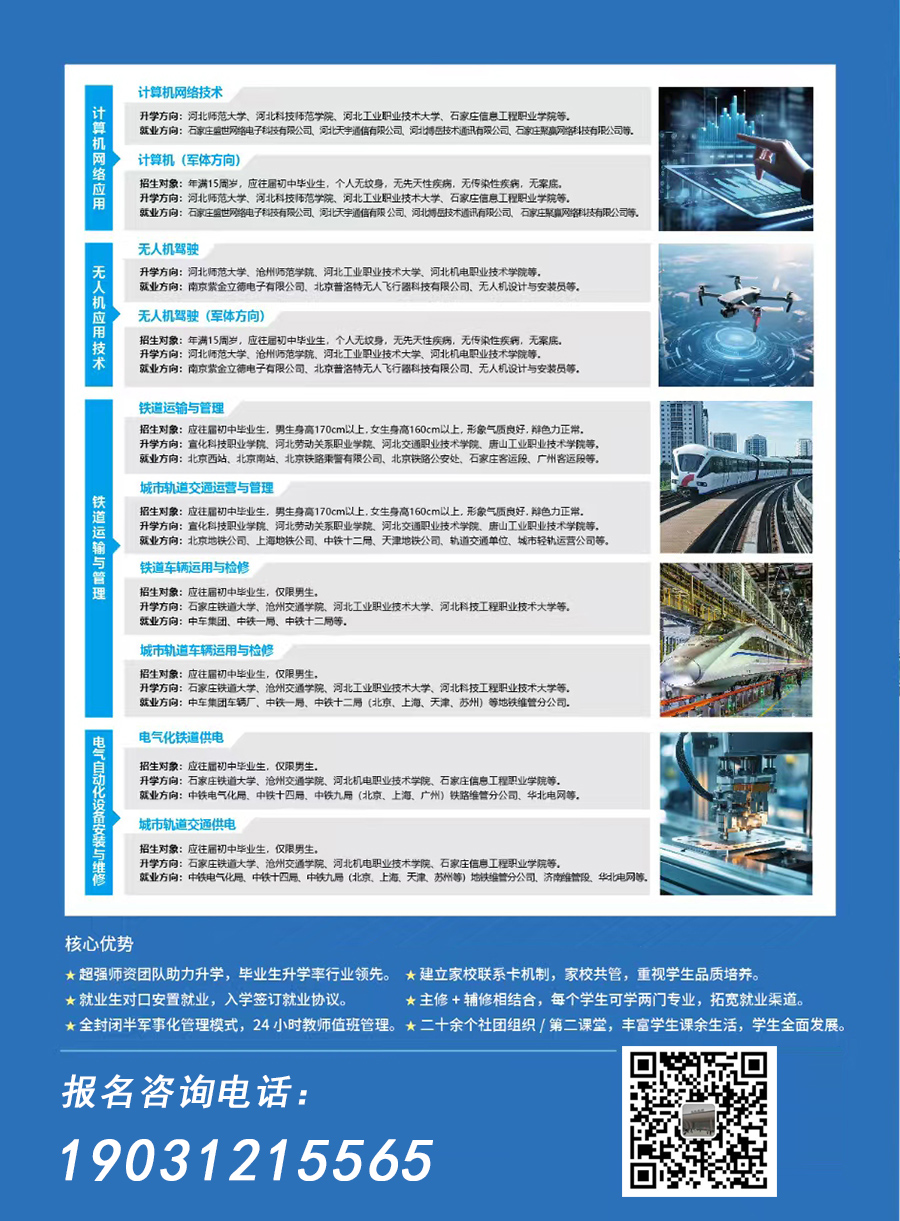 河北工程职业技工学校2026春季招生报名开始了,招生专业:计算机专业、电子商务专业、消防工程专业、铁路专业、医学护理专业、无人机专业、无人机驾驶专业、汽修专业、汽车美容专业、新能源汽车维修专业、幼师专业、会计专业。