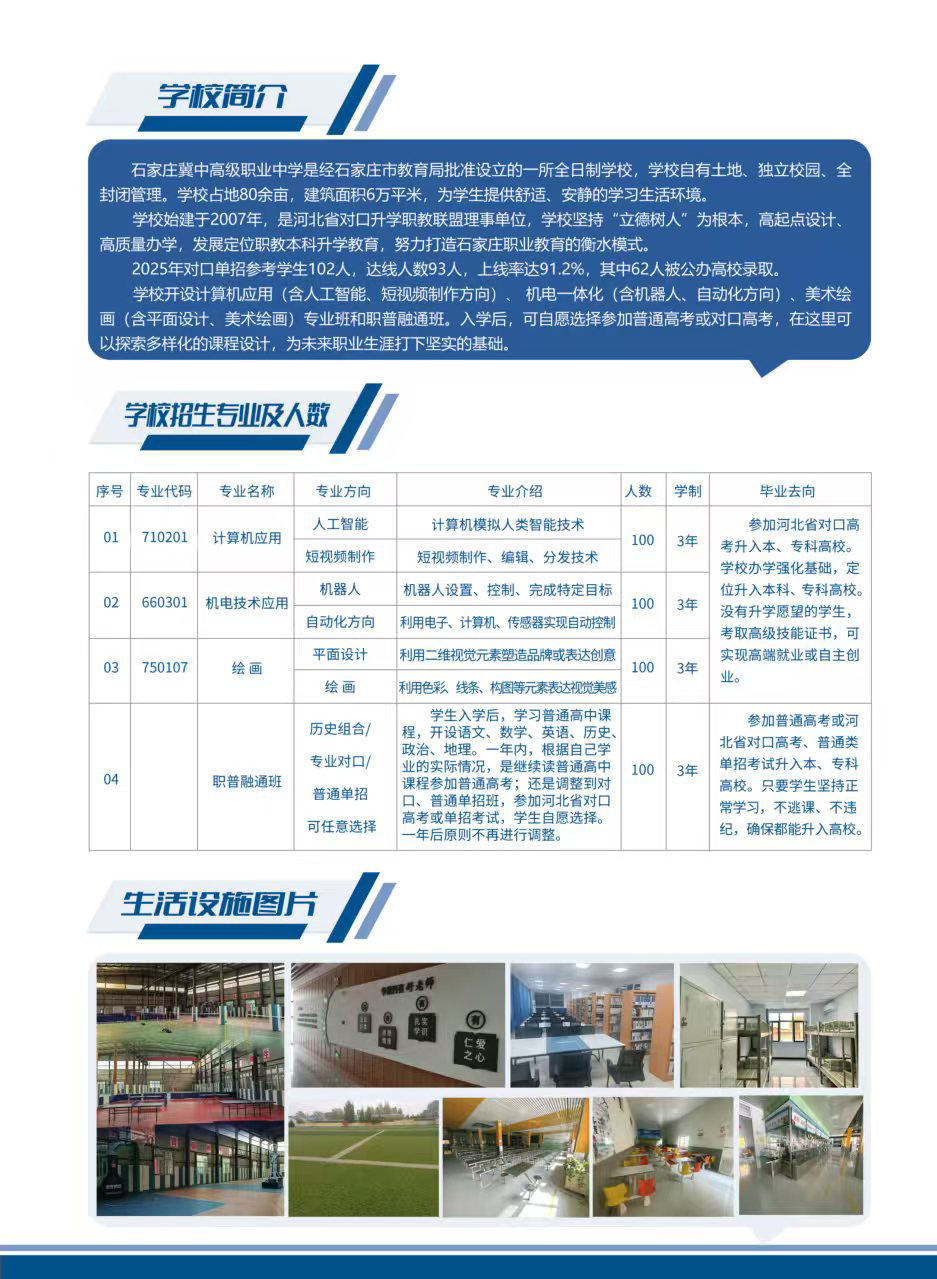 石家庄冀中职业高级中学2026招生简章
